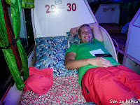 Deň po výlete sme odchádzali smerom do Vientaine. Cestu sme kupovali v tej istej agentúre ako výlet. Cena za lístok na bus - 180 000 KIP/osoba (22,22 €). V rámci lístka máte loď Don Det - Nakasong, bus Nakasong - Pakse a z Pakse nočný autobus smer Vientaine. Odchod z Don Det 11:00, príchod Vientaine 6:00 nasledujúci deň.